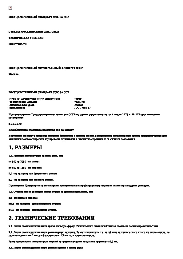 ГОСТ 7481-78: Стекло армированное листовое. Технические условия
