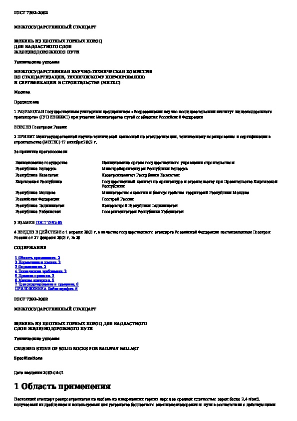 ГОСТ 7392-2002: Щебень из плотных горных пород для балластного слоя железнодорожного пути. Технические условия