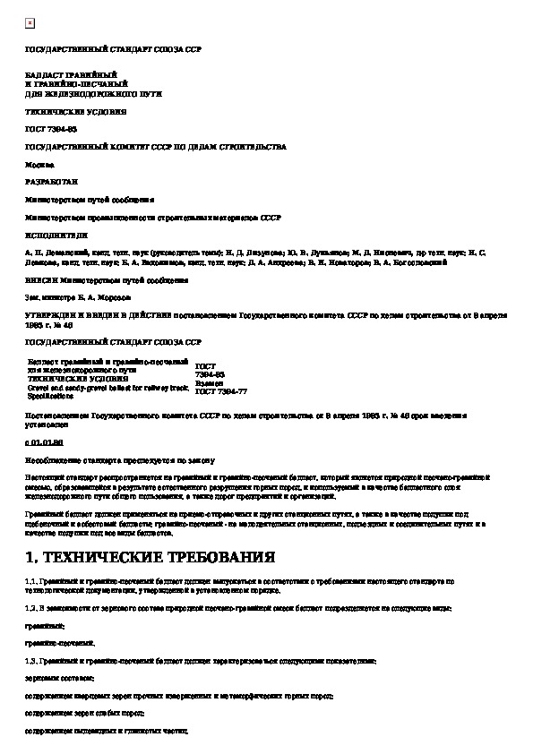 ГОСТ 7394-85: Балласт гравийный и гравийно-песчаный для железнодорожного пути. Технические условия