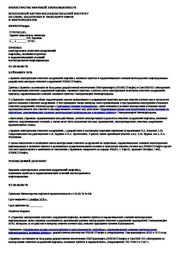 РД 39-30-85-78: Правила эксплуатации очистных сооружений нефтебаз, наливных пунктов и перекачивающих станций магистральных нефтепроводов