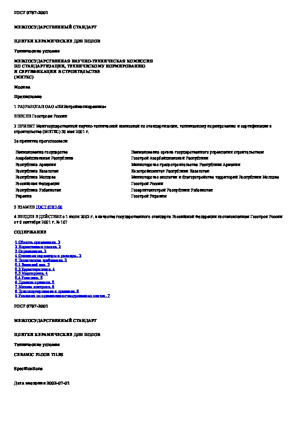 ГОСТ 6787-2001: Плитки керамические для полов. Технические условия