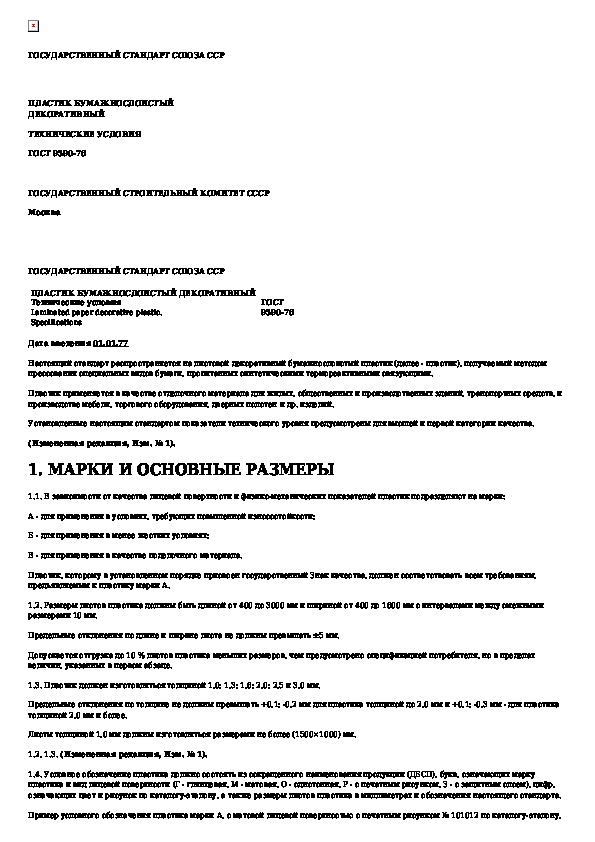 ГОСТ 9590-76: Пластик бумажнослоистый декоративный. Технические условия