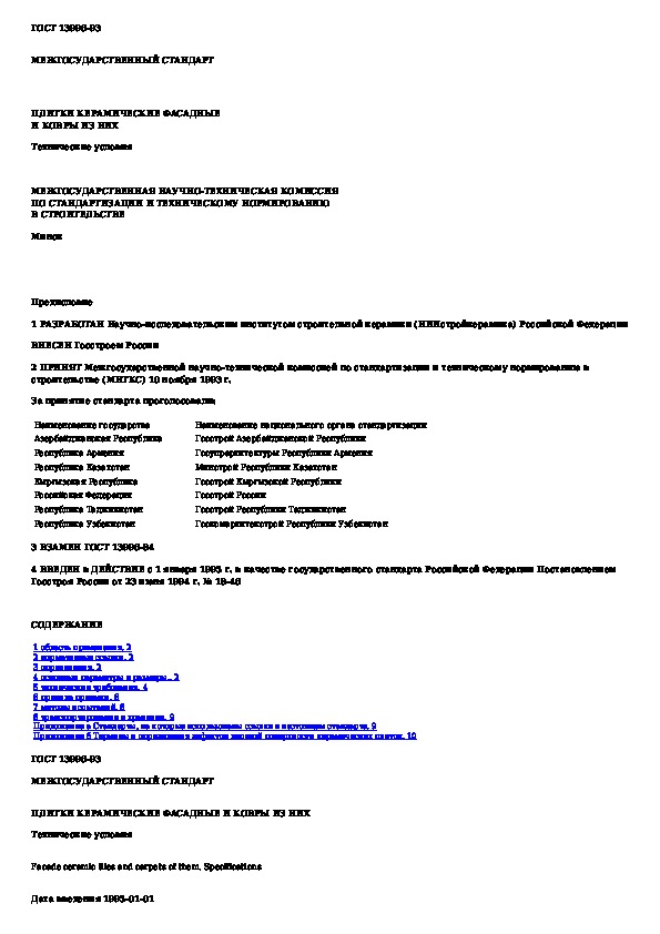 ГОСТ 13996-93: Плитки керамические фасадные и ковры из них. Технические условия