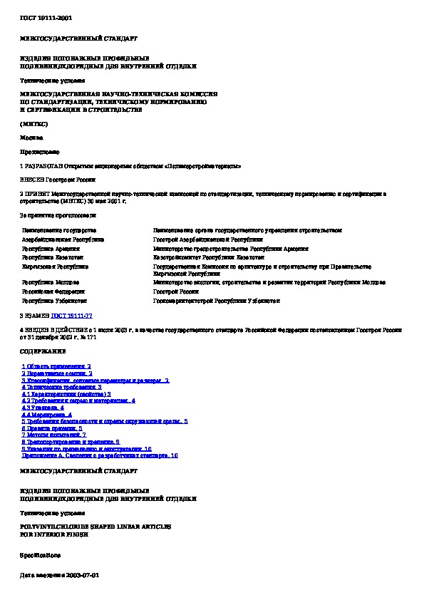 ГОСТ 19111-2001: Изделия погонажные профильные поливинилхлоридные для внутренней отделки. Технические условия