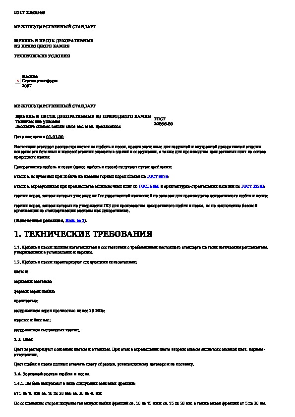 ГОСТ 22856-89: Щебень и песок декоративные из природного камня. Технические условия