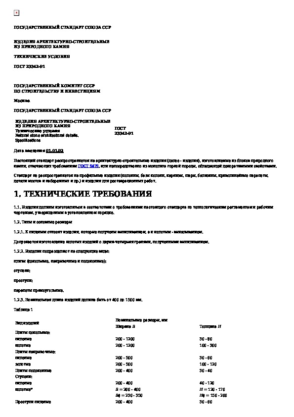 Наша цель состоит в том, чтобы предоставить вам быстрый доступ к содержанию документа Изделия архитектурно-строительные из природного камня. Технические условия.