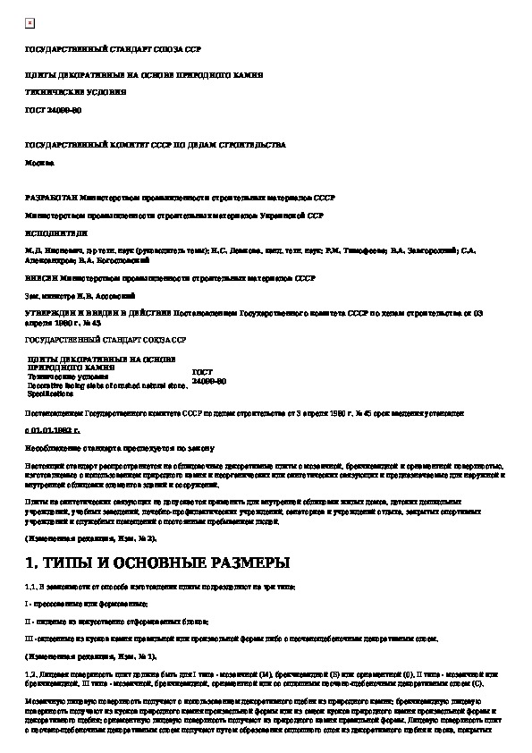 ГОСТ 24099-80: Плиты декоративные на основе природного камня. Технические условия
