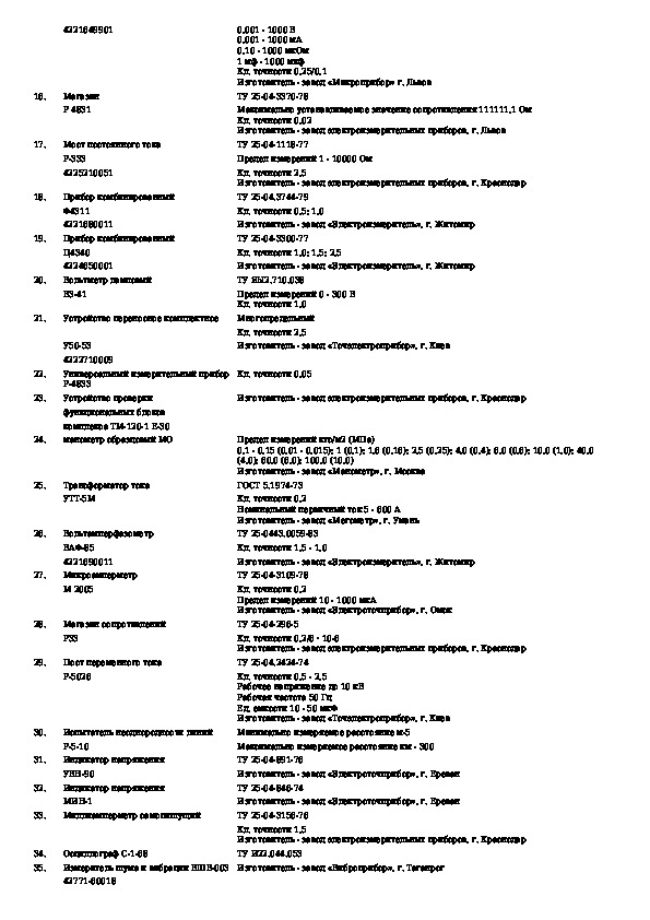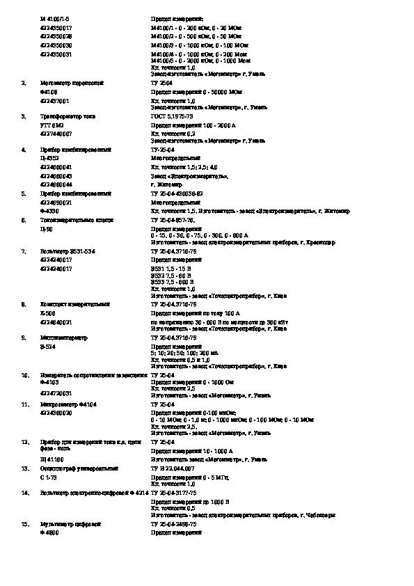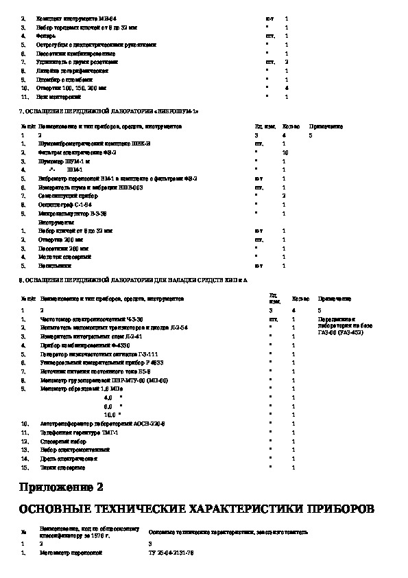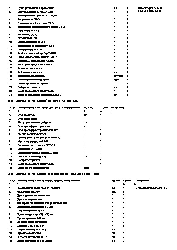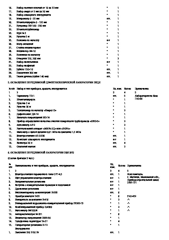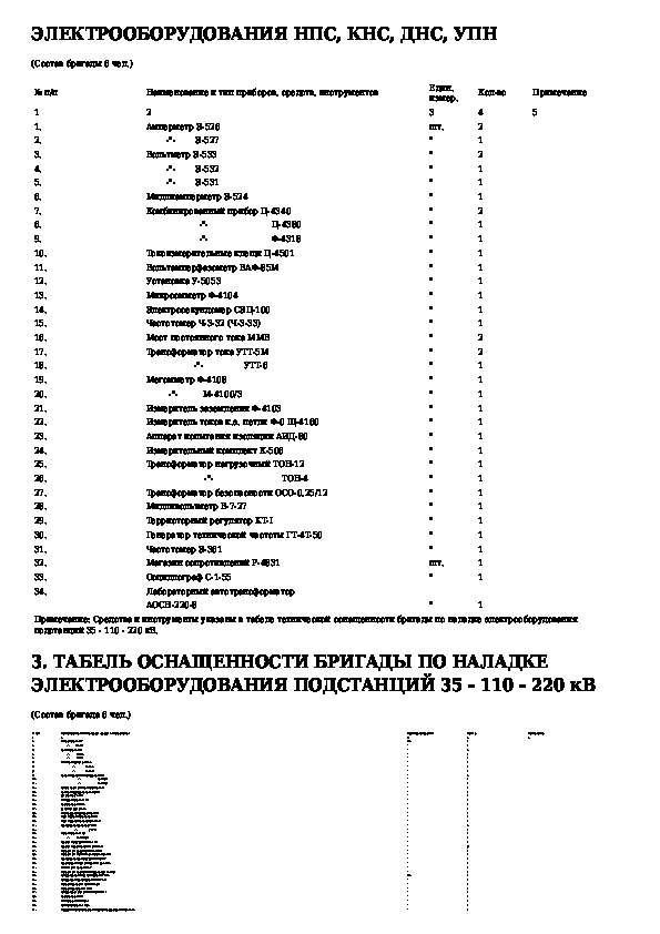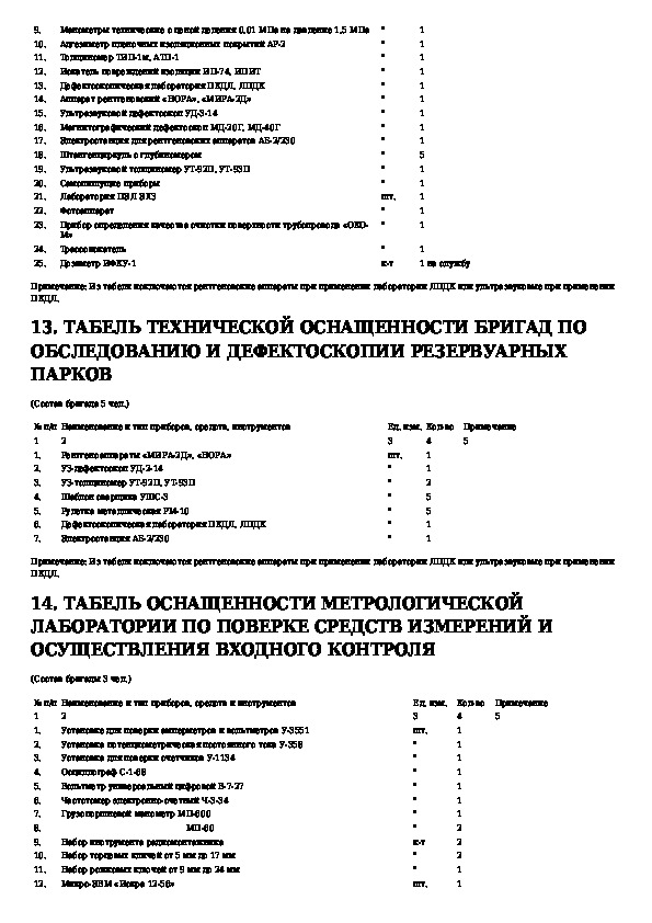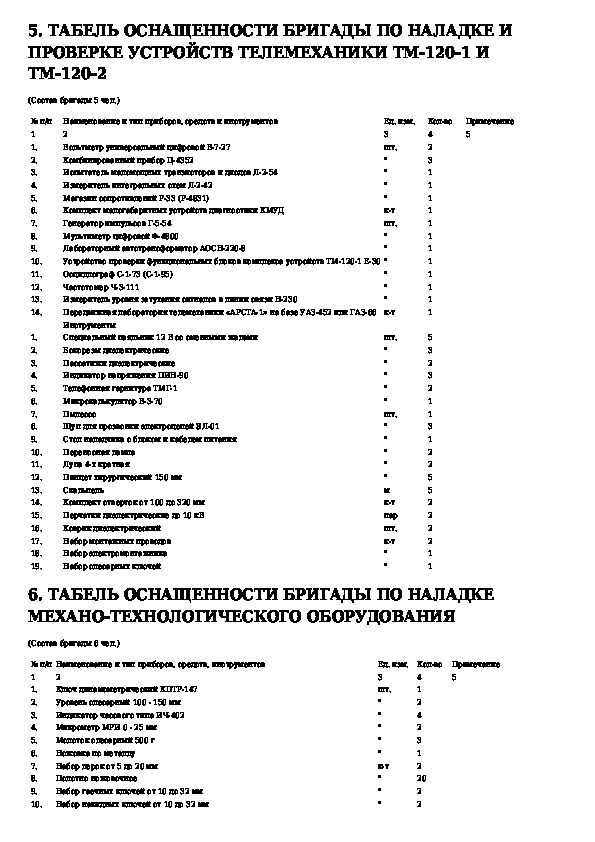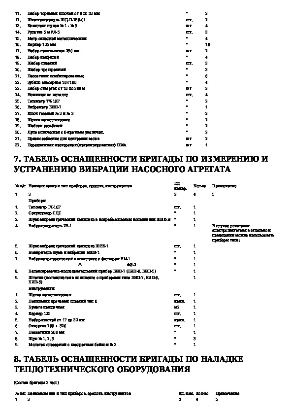 Табели технической оснащенности наладочных бригад централизованной системы технического обслуживания и ремонта магистральных н