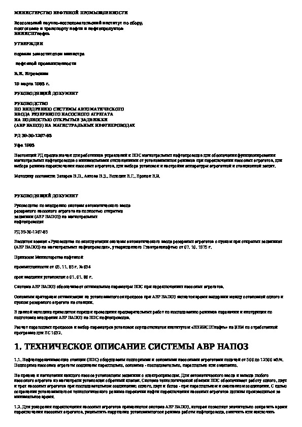 Руководство по внедрению системы автоматического ввода резервного насосного агрегата на полностью открытые задвижки (АВР НАПОЗ)