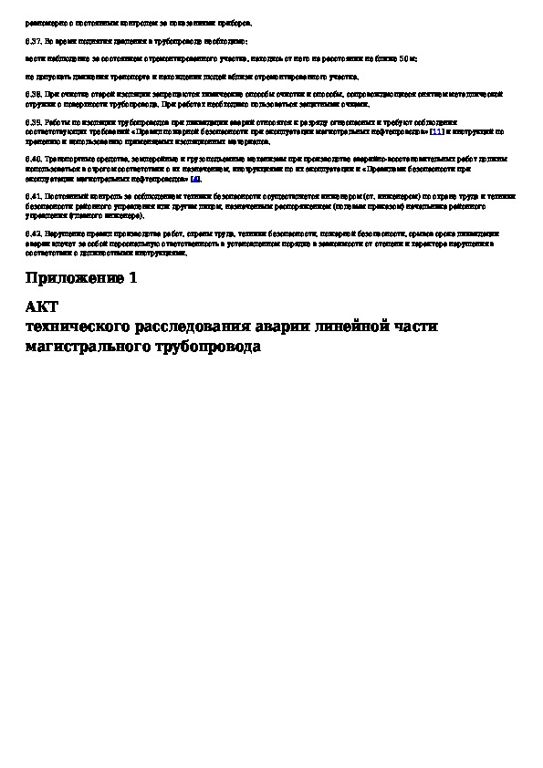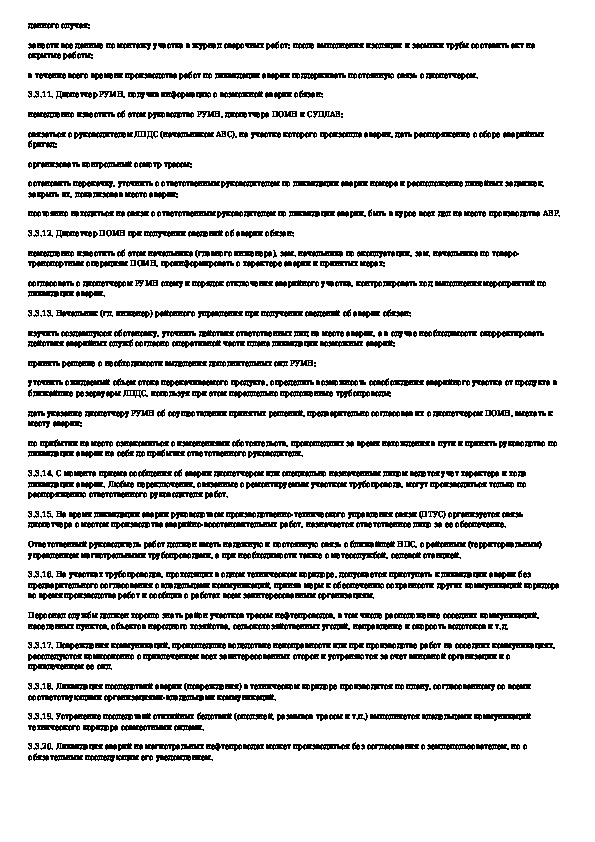 Инструкция по ликвидации аварий и повреждений на магистральных нефтепроводах