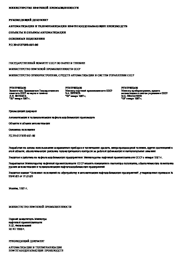 РД 39-0137095-001-86: Автоматизация и телемеханизация нефтегазодобывающих производств. Объекты и объемы автоматизации. Основные положения