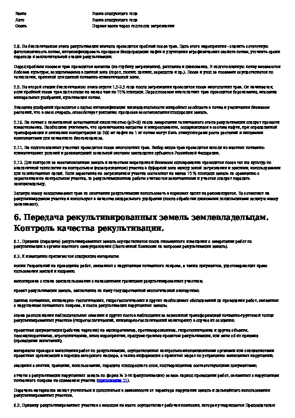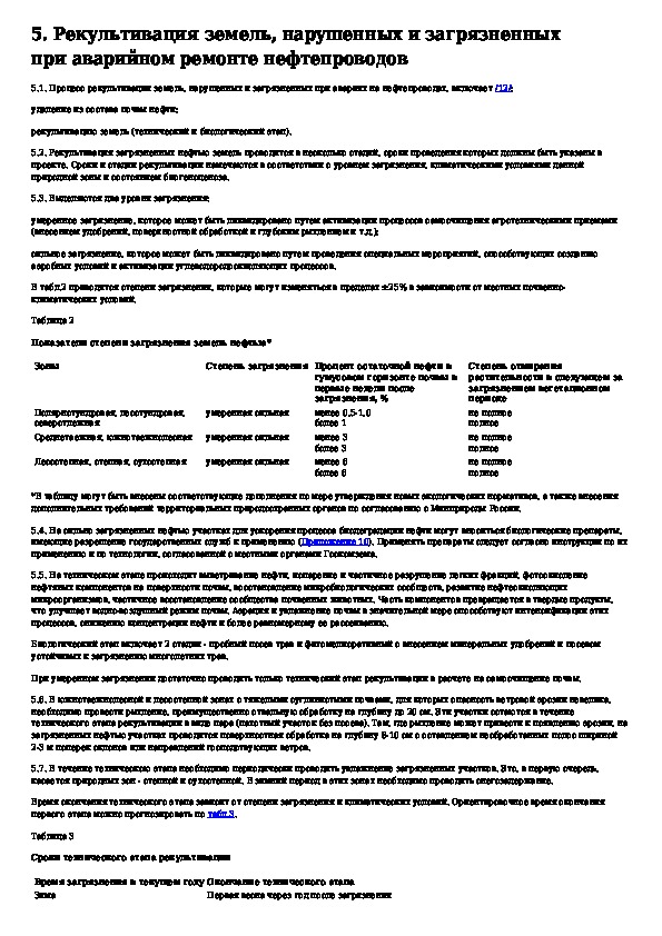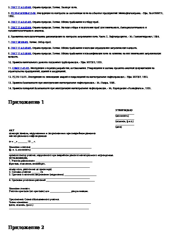 Инструкция по рекультивации земель, нарушенных и загрязненных при аварийном и капитальном ремонте магистральных нефтепроводов