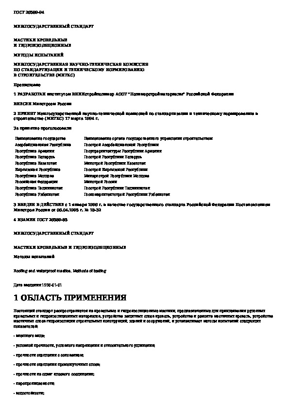 ГОСТ 26589-94: Мастики кровельные и гидроизоляционные. Методы испытаний