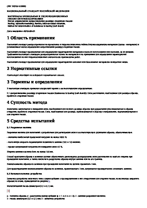 ГОСТ Р 53455-2009: Материалы кровельные и гидроизоляционные гибкие битумосодержащие. Метод определения сопротивления раздиру стержнем гвоздя