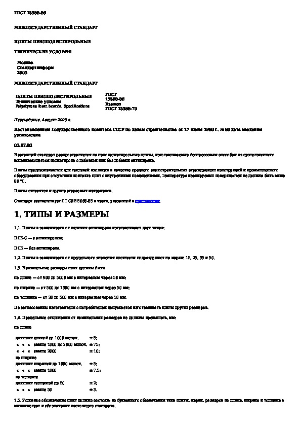ГОСТ 15588-86: Плиты пенополистирольные. Технические условия