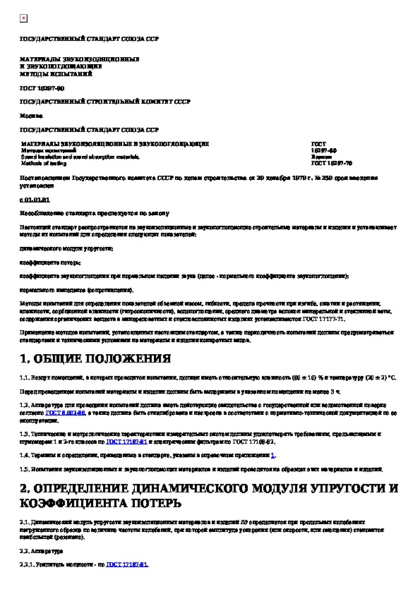 ГОСТ 16297-80: Материалы звукоизоляционные и звукопоглощающие. Методы испытаний