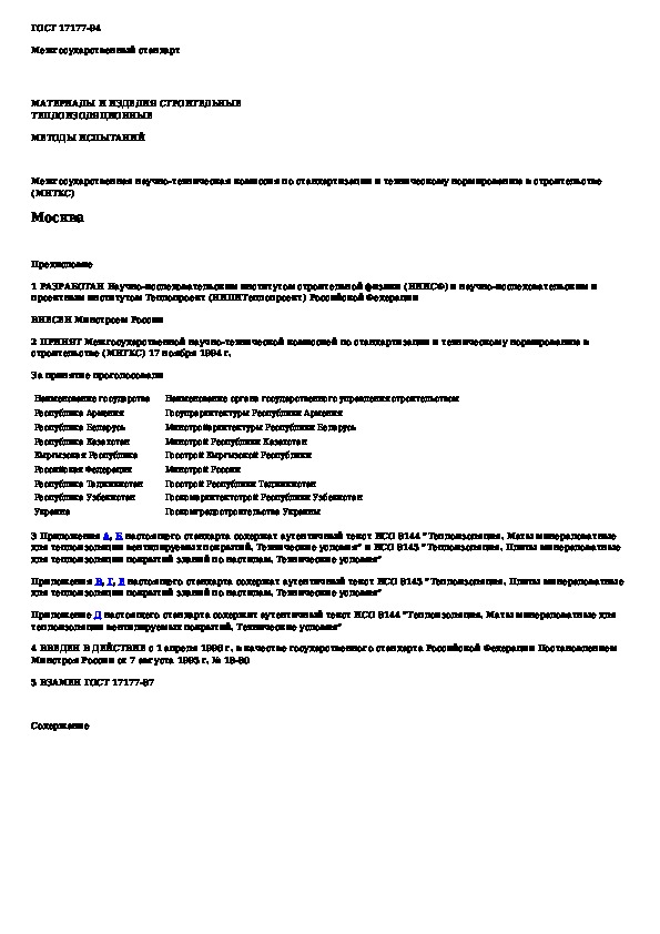 ГОСТ 17177-94: Материалы и изделия строительные теплоизоляционные. Методы испытаний