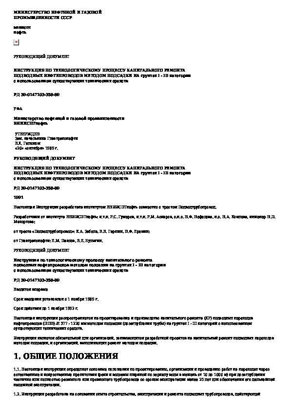 Наша цель состоит в том, чтобы предоставить вам быстрый доступ к содержанию документа Инструкция по технологическому процессу капитального ремонта подводных нефтепроводов методом подсадки на грунтах I-III категории .
