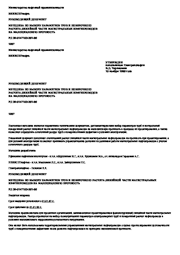 Наша цель состоит в том, чтобы предоставить вам быстрый доступ к содержанию документа Методика по выбору параметров труб и поверочного расчета линейной части магистральных нефтепроводов на малоцикловую прочность.