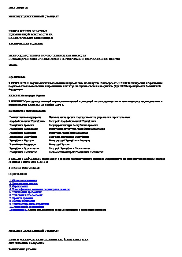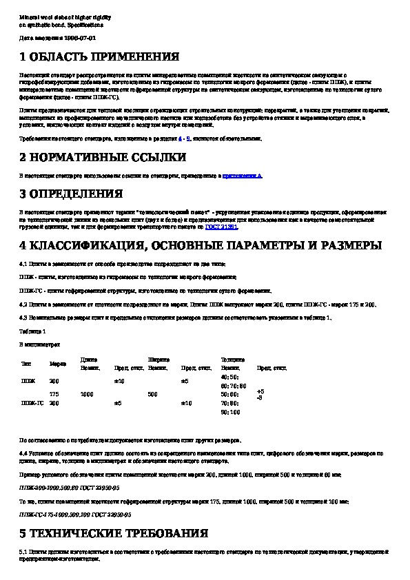 ГОСТ 22950-95: Плиты минераловатные повышенной жесткости на синтетическом связующем. Технические условия
