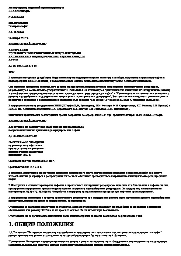 Наша цель состоит в том, чтобы предоставить вам быстрый доступ к содержанию документа Инструкция по ремонту железобетонных предварительно напряженных цилиндрических резервуаров для нефти.
