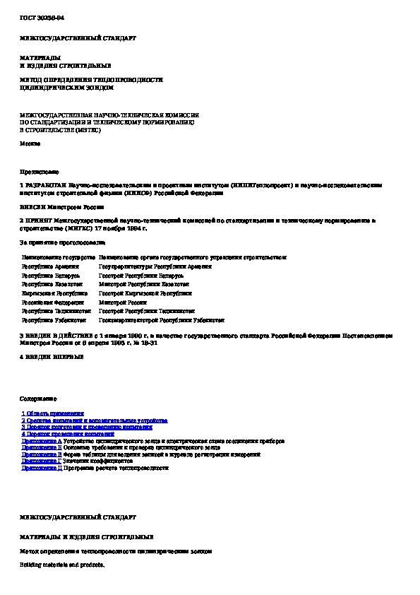 Наша цель состоит в том, чтобы предоставить вам быстрый доступ к содержанию документа Материалы и изделия строительные. Метод определения теплопроводности цилиндрическим зондом.