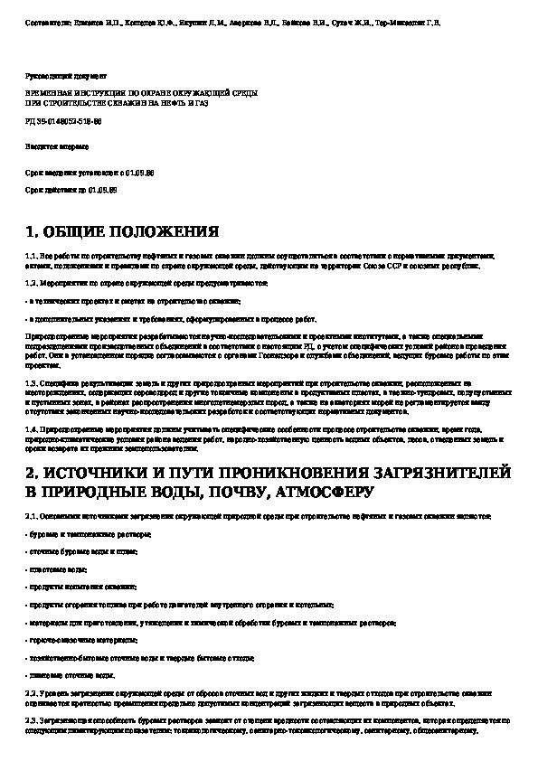 • Просмотр в полноэкранном режиме - легко просмотреть документ Временная инструкция по охране окружающей среды при строительстве скважин на нефть и газ (без загрузки его на свой компьютер).