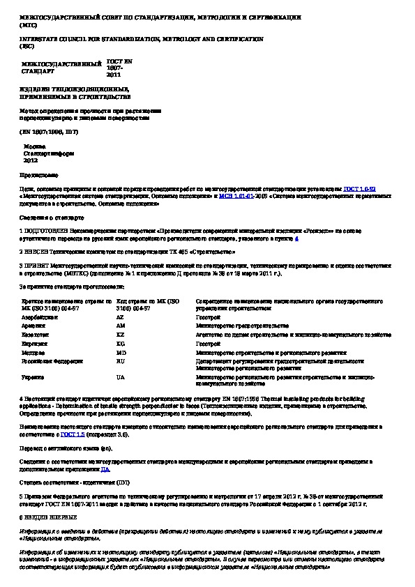 Наша цель состоит в том, чтобы предоставить вам быстрый доступ к содержанию документа Изделия теплоизоляционные, применяемые в строительстве. Метод определения прочности при растяжении перпендикулярно к лицевым по.