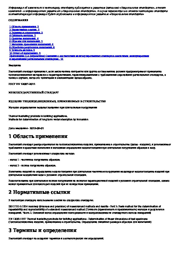 Наша цель состоит в том, чтобы предоставить вам быстрый доступ к содержанию документа Изделия теплоизоляционные, применяемые в строительстве. Методы определения водопоглощения при длительном погружении.