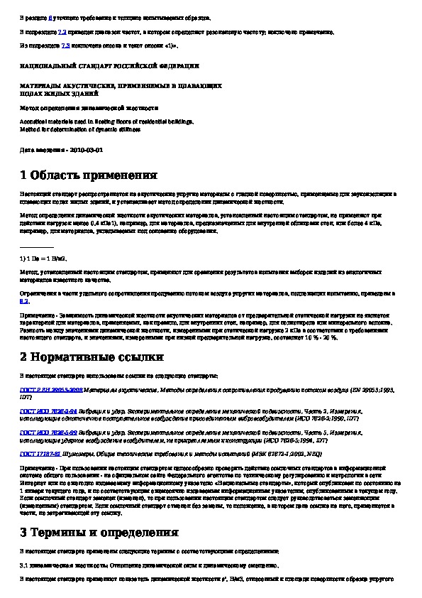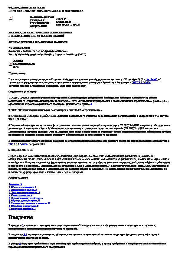Наша цель состоит в том, чтобы предоставить вам быстрый доступ к содержанию документа Материалы акустические, применяемые в плавающих полах жилых зданий. Метод определения динамической жесткости.