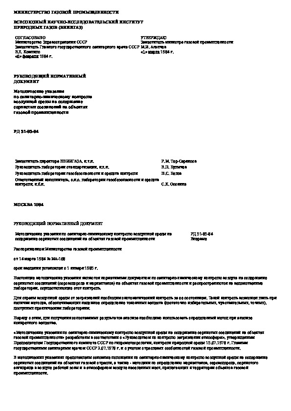 Наша цель состоит в том, чтобы предоставить вам быстрый доступ к содержанию документа Методические указания по санитарно-химическому контролю воздушной среды на содержание сернистых соединений на объектах газовой .