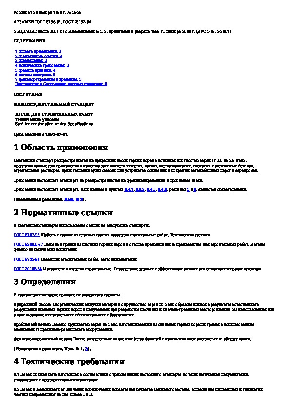 ГОСТ 8736-93: Песок для строительных работ. Технические условия
