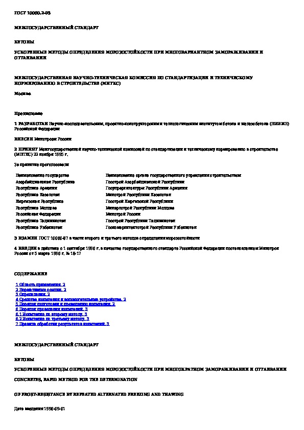 ГОСТ 10060.2-95: Бетоны. Ускоренные методы определения морозостойкости при многократном замораживании и оттаивании