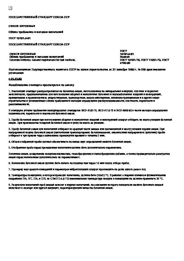 ГОСТ 10181.0-81: Смеси бетонные. Общие требования к методам испытаний