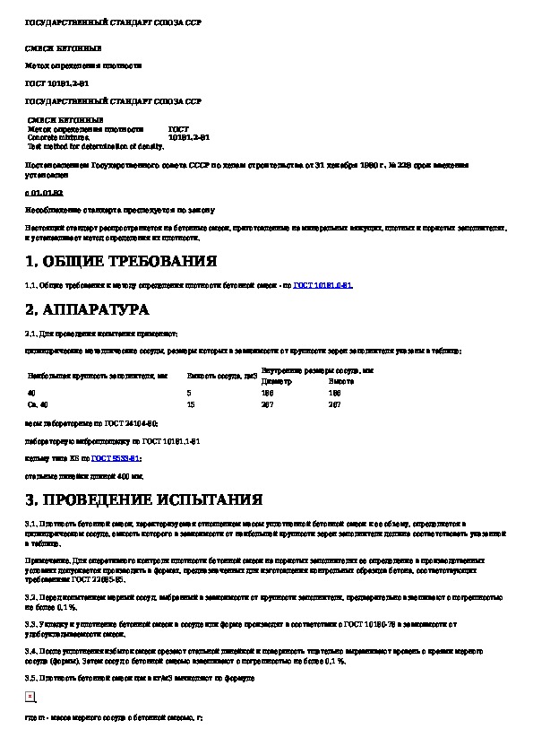 ГОСТ 10181.2-81: Смеси бетонные. Методы определения плотности