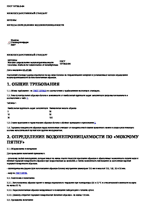 Наша цель состоит в том, чтобы предоставить вам быстрый доступ к содержанию документа Бетоны. Методы определения водонепроницаемости.