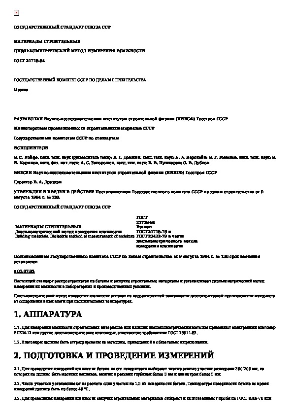ГОСТ 21718-84: Материалы строительные. Диэлькометрический метод измерения влажности