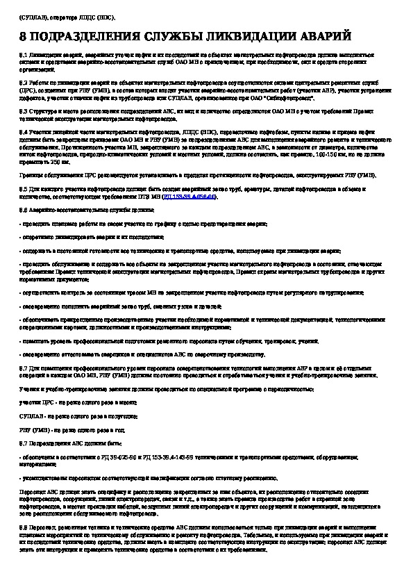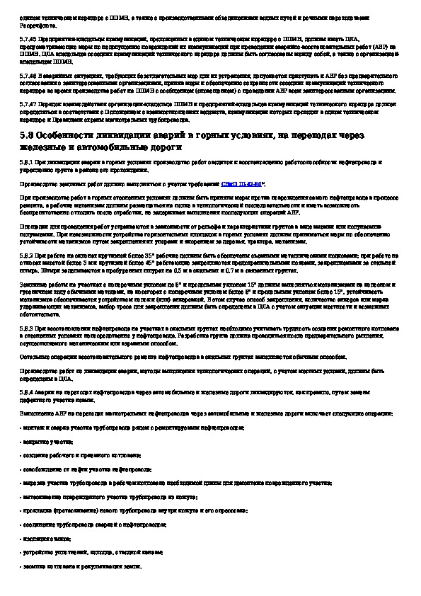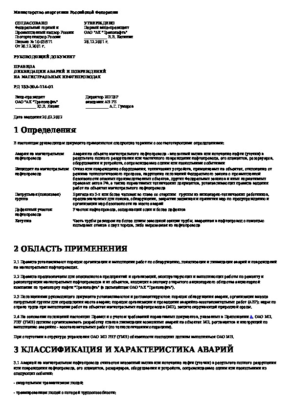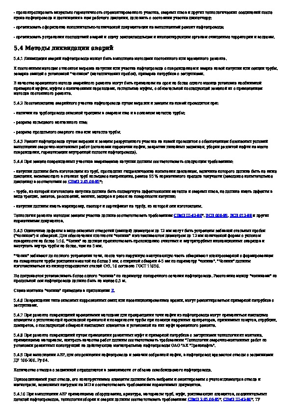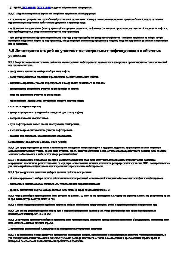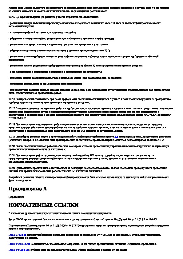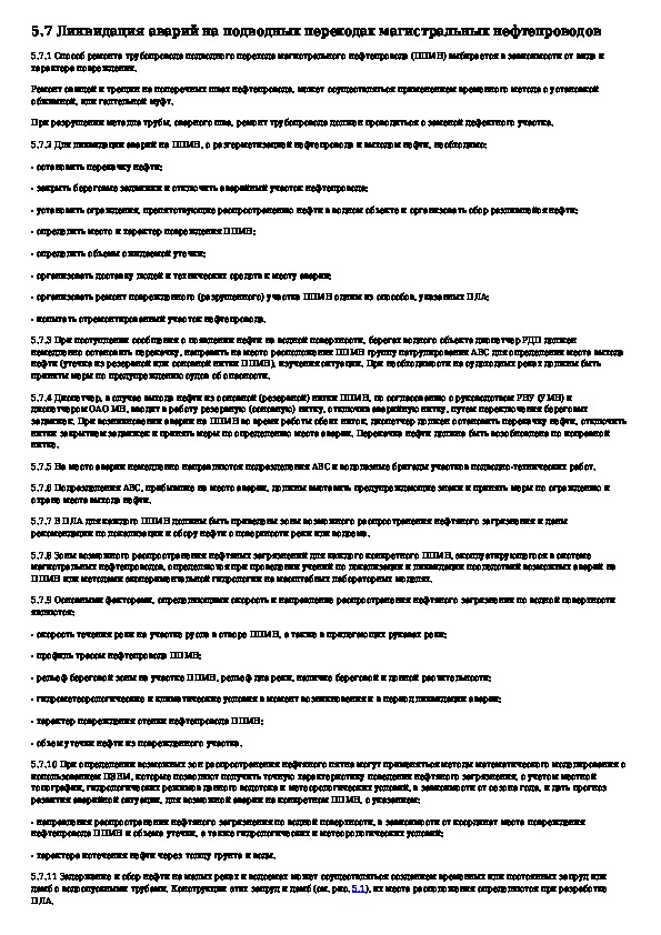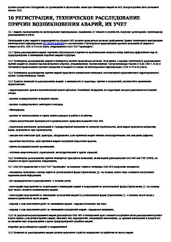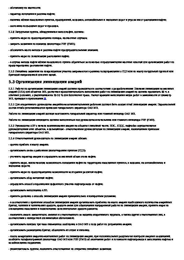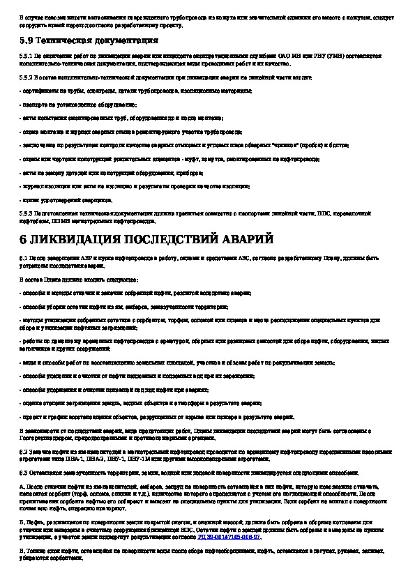 Правила ликвидации аварий и повреждений на магистральных нефтепроводах