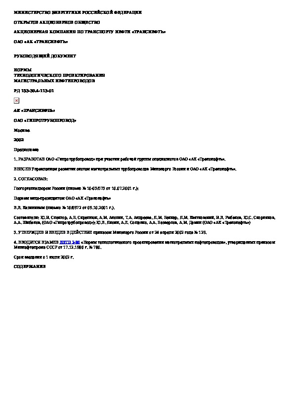Наша цель состоит в том, чтобы предоставить вам быстрый доступ к содержанию документа Нормы технологического проектирования магистральных нефтепроводов.