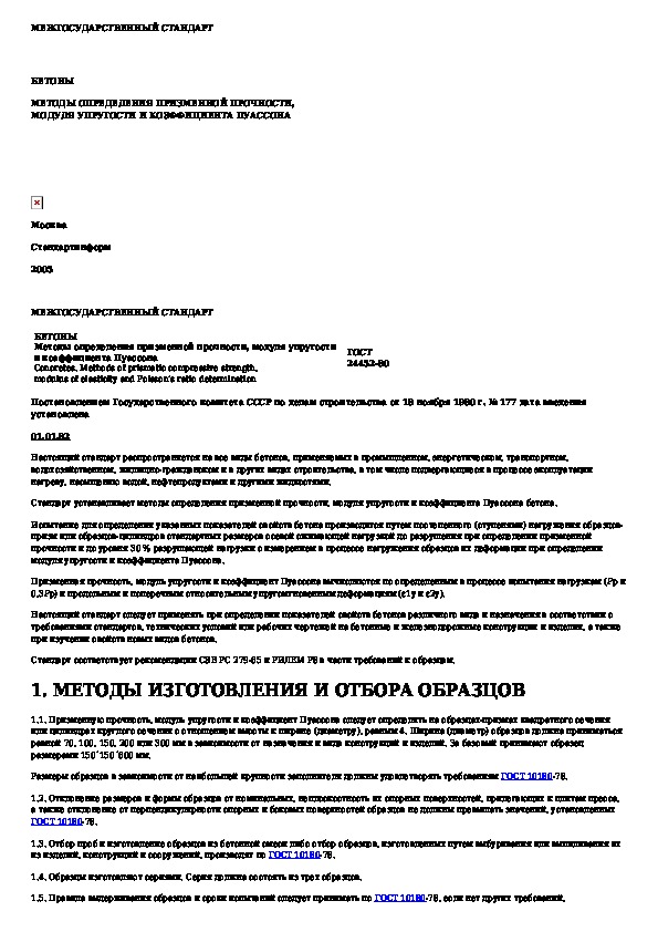 ГОСТ 24452-80: Бетоны. Методы определения призменной прочности, модуля упругости и коэффициента Пуассона