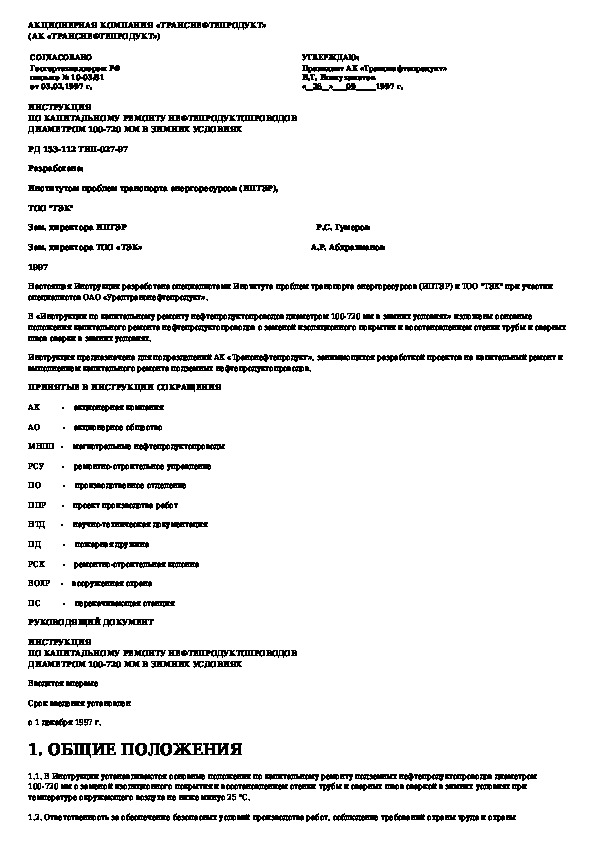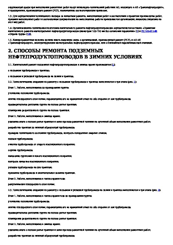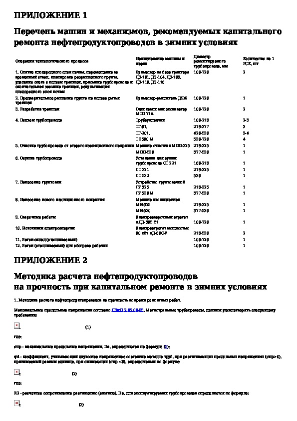 Инструкция по капитальному ремонту нефтепродуктопроводов диаметром 100-720 мм в зимних условиях