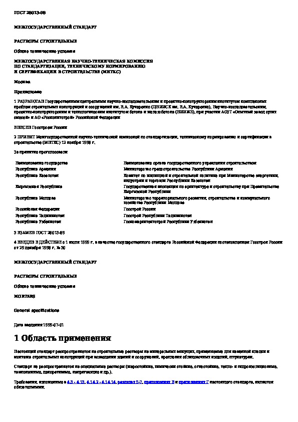 ГОСТ 28013-98: Растворы строительные. Общие технические условия