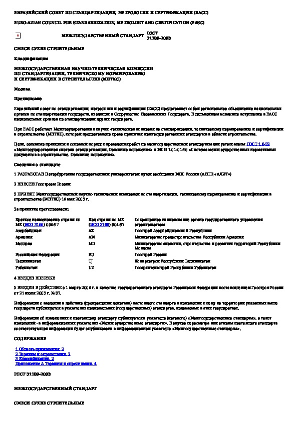 ГОСТ 31189-2003: Смеси сухие строительные. Классификация