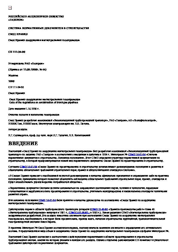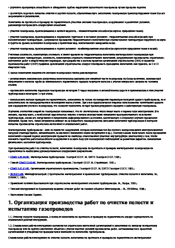 СП 111-34-96: Очистка полости и испытание газопроводов