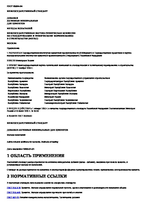 ГОСТ 25094-94: Добавки активные минеральные для цементов. Методы испытаний