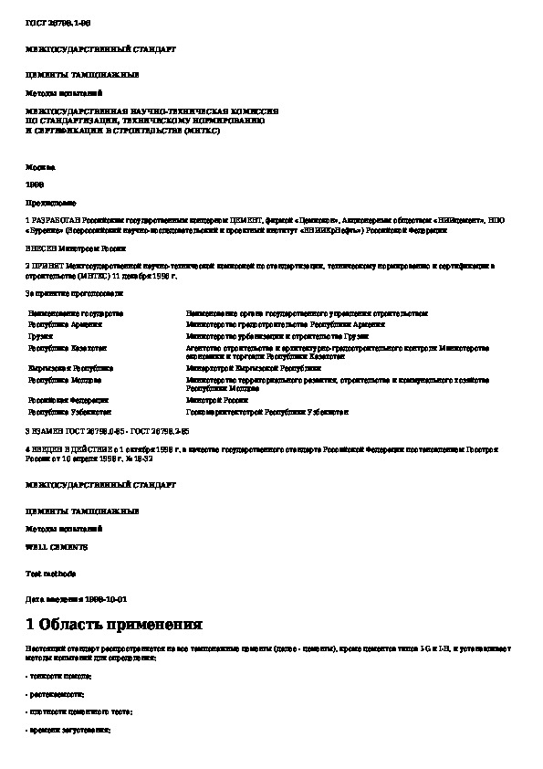Наша цель состоит в том, чтобы предоставить вам быстрый доступ к содержанию документа Цементы тампонажные. Методы испытаний.