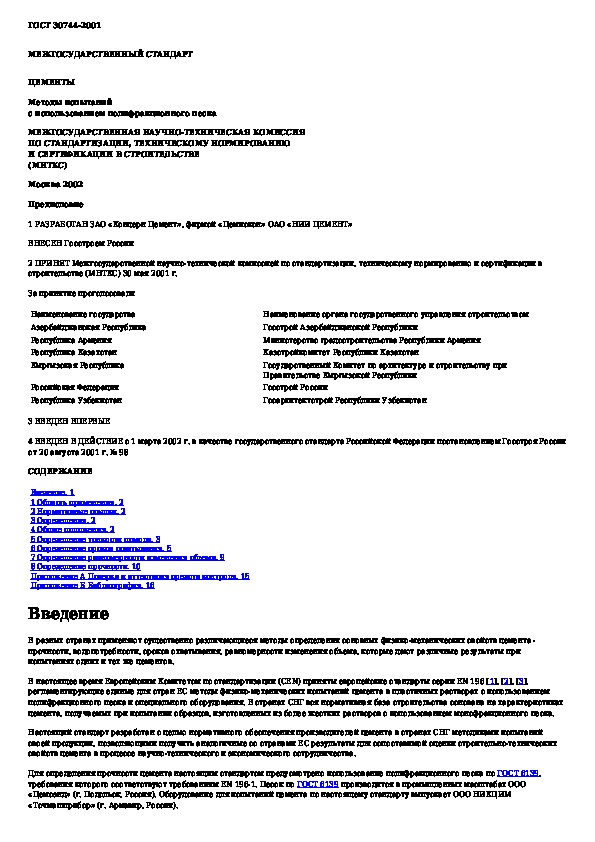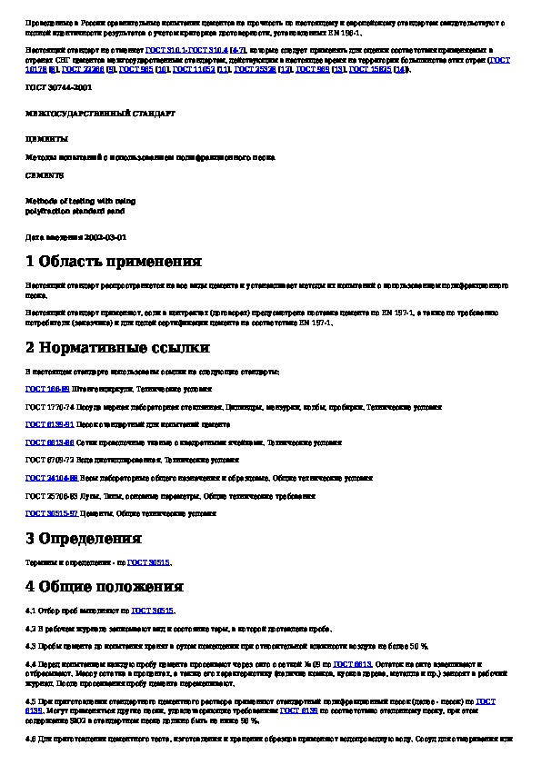 ГОСТ 30744-2001: Цементы. Методы испытаний с использованием полифракционного песка