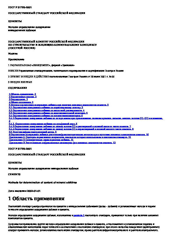 ГОСТ Р 51795-2001: Цементы. Методы определения содержания минеральных добавок