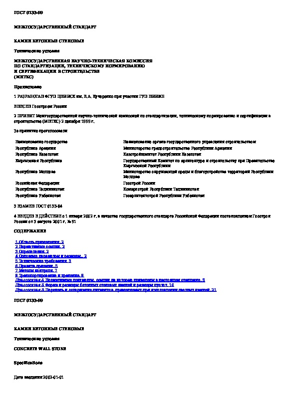 ГОСТ 6133-99: Камни бетонные стеновые. Технические условия