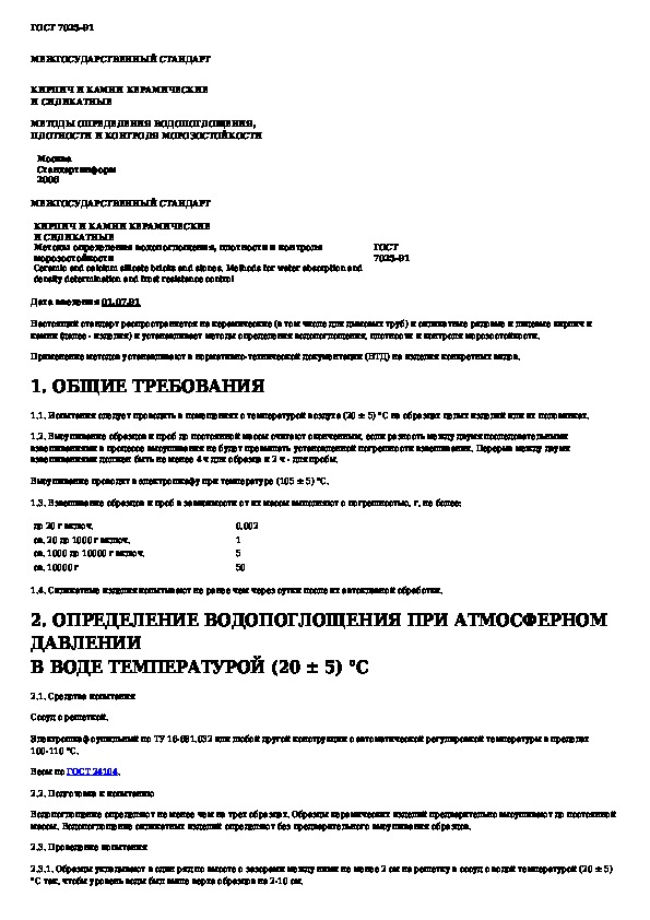 Наша цель состоит в том, чтобы предоставить вам быстрый доступ к содержанию документа Кирпич и камни керамические и силикатные. Методы определения водопоглощения, плотности и контроля морозостойкости.